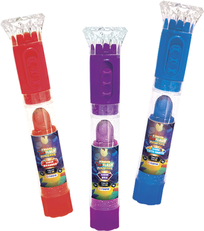 TUTTI-FRUTTI: Açúcar, xarope de maltose, água, agente de massa lactato de sódio, aroma artificial de tutti frutti, corante artificial azul brilhante FCF (E133) e dióxido de titânio (INS 171). NÃO CONTÉM GLÚTEN.