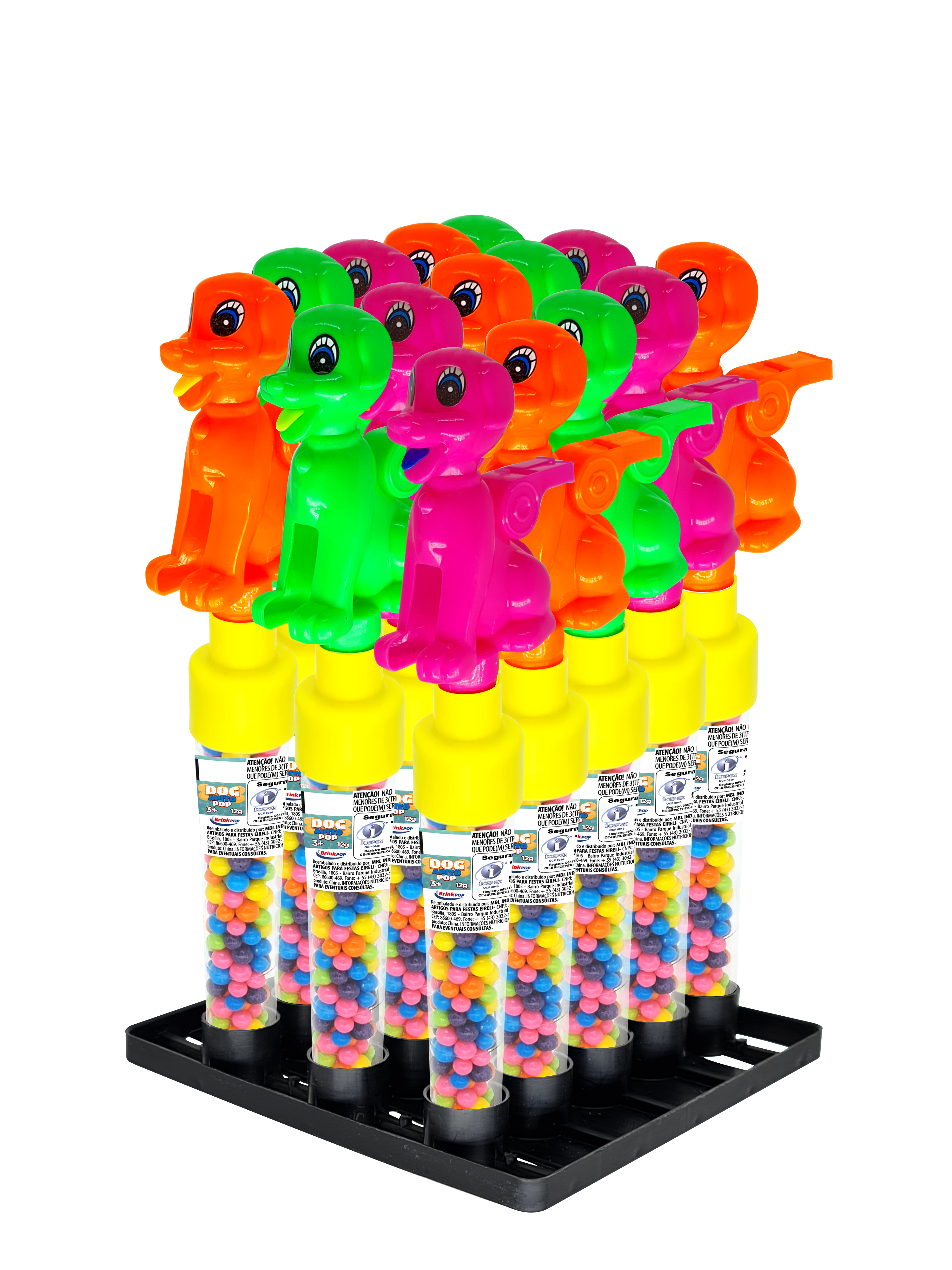 TUTTI-FRUTTI: Açúcar, xarope de maltose, água, agente de massa lactato de sódio, aroma artificial de tutti frutti, corante artificial azul brilhante FCF (E133) e dióxido de titânio (INS 171). NÃO CONTÉM GLÚTEN.