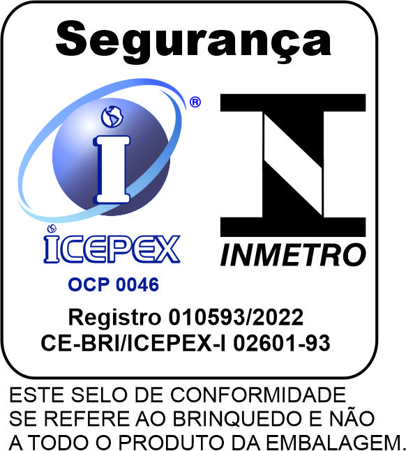 Brinquedo menino, com cabeça flexível para emissão de som. Vem com um tubo com 12 g de confeitos no sabor Tutti-Frutti
